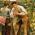Мысленное обращение к желанным встречам не покидало меня. Прогулки по закоулкам Москвы, кино, театры — каждая встреча радовала, подпитывала последующие размышления. Как символ наших отношений вспомнилась картина Жюля Бастьен-Лепажа "Деревенская любовь". Это, конечно, не пример должного, но это личное восприятие. Возможно, до некоторой степени обожествление, как бы приближение на коленях к образу святого в храме...