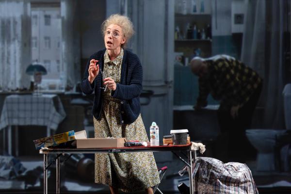 А каким был этот мир в его житейской обыденности, дает представление необыкновенной красоты декорация (Художник - Петр Воскресенский). Она состоит из трех частей, трех проекций жилой городской квартиры. Есть комната со светом уютной лампы. Есть центральная комната. Есть ванная комната. И световое оформление (Оскар Паулиньш) акцентирует внимание поочередно то на одной, то на другой, обнаруживая, что иллюзия объемности создана на время от времени поднимающихся как от ветра плоских завесах. Мы - зрители видим жилье как будто за ними – прозрачными, - а на самом деле, комнаты изображены на них... Поначалу действие долго не начинается, в эти комнаты нужно вглядываться, кто-то переходит из одной в другую, кто-то живет обычной жизнью, даже не спешит, кто? Дмитрий Крымов любит какие-то подробности быта рассматривать подолгу и словно в микроскоп, придавая им глубокое значение, которое в итоге не всегда обнаруживают зрители... Что ж, его право.