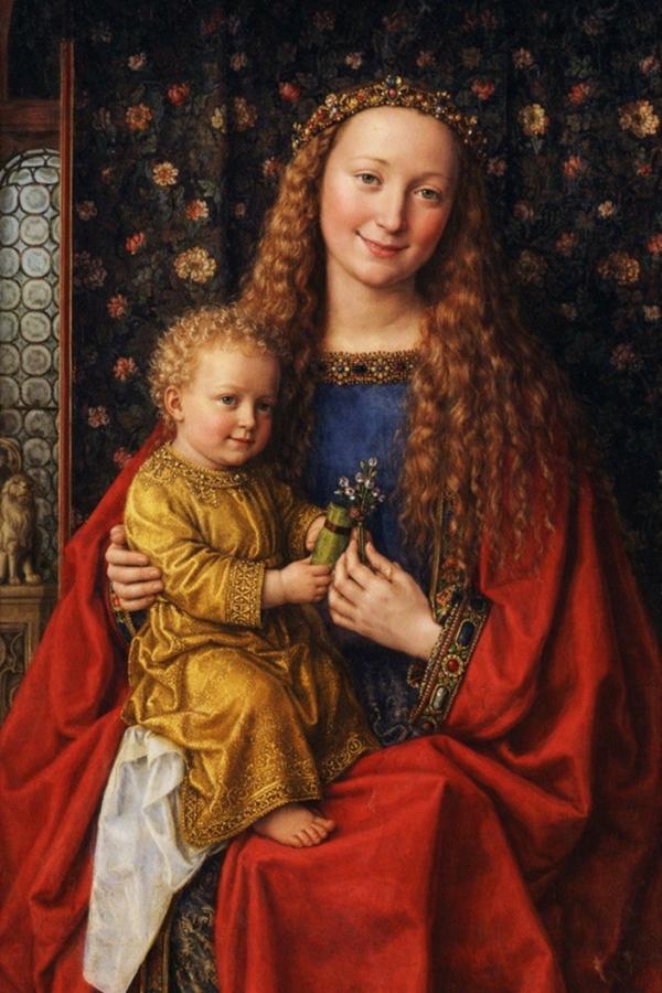 Эта картина тут в музее висит уже без малого семь лет, а раньше она у меня в комнате висела. Много лет. Сначала в Одессе, а потом в моём доме здесь в Лос-Анджелесе, пока сюда в музей не попала. Да-да, не улыбайтесь. Это «Мадонна с младенцем» Яна ван Эйка, начало 15-го века. Вот смотрите, на табличке написано: «Attributed to Jan van Eyck, circa 1430». Сначала была моя, а потом вот здесь, в музее поселилась. Получилось это так.