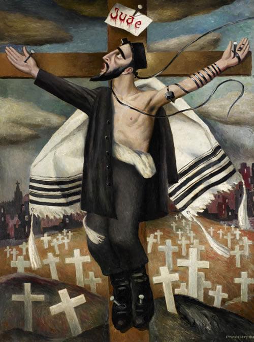 Мне вспомнилась картина Эммануила Леви: еврей, облаченный в талит, распятый на кресте…